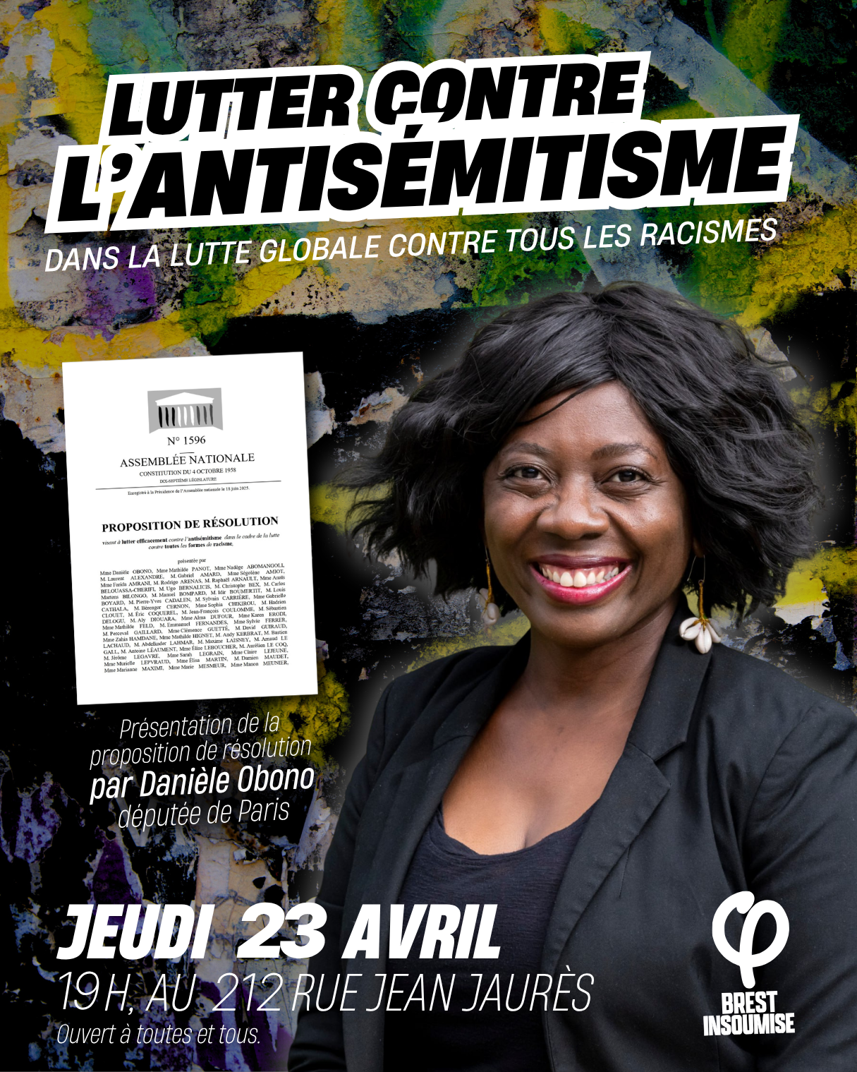 À cette occasion, nous recevons Danièle Obono, députée de La France insoumise à Paris, pour présenter sa proposition de résolution visant à lutter efficacement contre l’antisémitisme, dans le cadre de la lutte contre toutes les formes de racisme.
