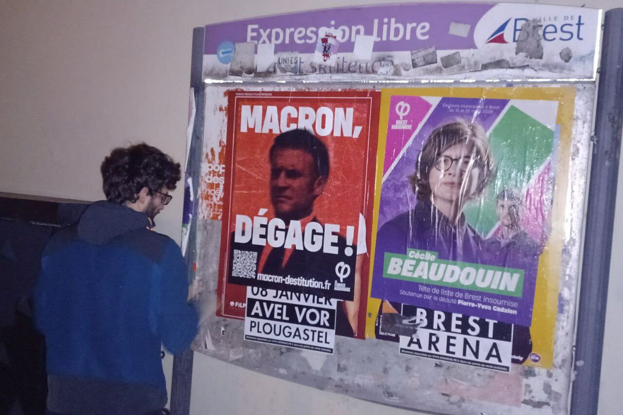 Notre activité s’est poursuivie durant la période de fin d’année. Ce 26, nous organisons une séance de collage d’affiches dans Brest, après un porte-à-porte à Kerourien.